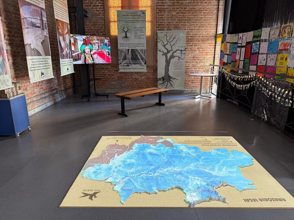 From 4 to 9 August 2025, the model was displayed in Brasília, Brazil, at the Memorial dos Povos Originários (Memorial of Indigenous Peoples) as part of the exhibition Encounters for Climate and Indigenous Justice. The objective of this event was to create a national-level platform for dialogue, bringing together Indigenous leaders, researchers, and civil society organisations. The exhibition sought to highlight the pressing challenges faced by Amazonian communities, to strengthen Indigenous visibility in national climate policymaking, and to consolidate alliances in preparation for COP30 in Belém.