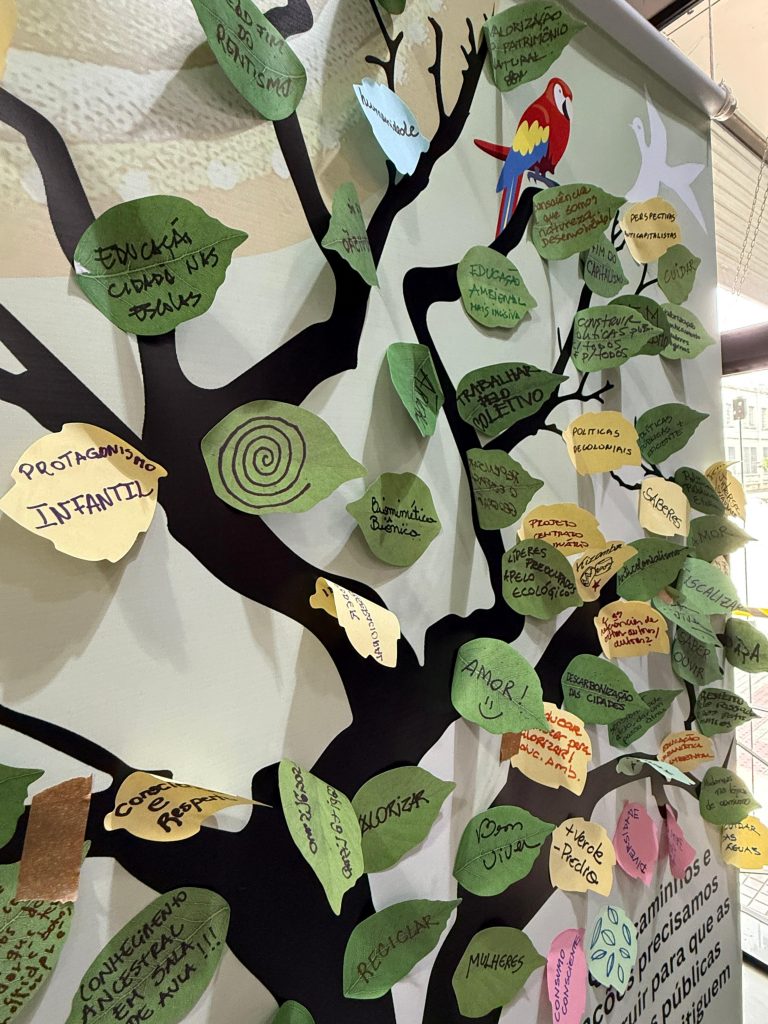 From 14 to 18 October 2025, a new exhibition at CEHUS in Pelotas, Brazil, showcased the project bringing together visual materials, videos, and again the 3D Amazon model to engage the public in discussions about climate change and environmental justice. The exhibition, open to everyone and free of charge, attracted students, researchers, and community members, providing a space for reflection on the importance of protecting the Amazon and amplifying voices in the lead-up to COP30. It was part of the PROJETAR Seminar, an event organised by the Postgraduate Programme in Architecture and Urbanism at the Federal University of Pelotas, which brought together participants from different regions of the country. The Queda do Céu film exhibition was also part of this initiative and is closely connected to the project – hosted at Cine UFPel with free entrance, it invited the public to engage with powerful reflections on the Amazon and Indigenous resistance.